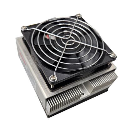 The SD-045-12-AD is Kenfatech standard Thermoelectric Cooler Assembly that heat dissipated by air in hot sides and direct connective in cold side. It provides active theraml soulation to objects of customer application. The hot sides used one high technology thermal conductivity heat sink and high reliability fan for heat transferring. And the cold side used one aluminum block to connect customer object for heat transferring. The heat pumping action is took by thermoelectric modules, which is big brand, Ferrotec or Laird. High COP more than 1.0, the power consuption of the unit is about 47.3watts, and cooling perfromance more than 47.5watts at dT in 0℃ and ambient tempeature in 35℃.